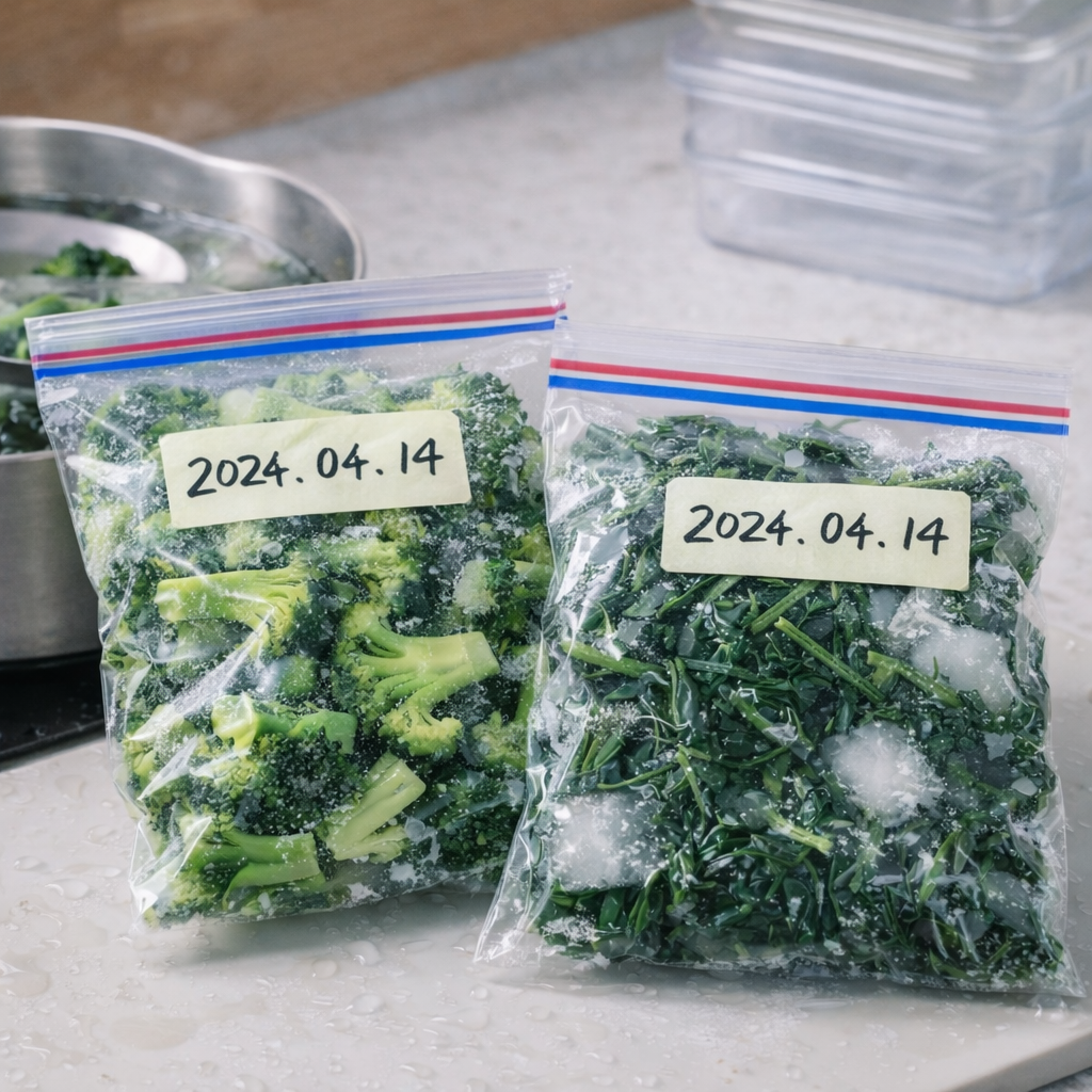 브로콜리, 시금치 등의 채소는 데친 후 냉동하면 신선도를 더 오래 유지할 수 있습니다.